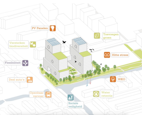 Wij ontwerpen duurzame en toekomstbestendige leefomgevingen. In onze projecten streven we samen met de opdrachtgever naar de juiste balans. Bij de start van elk project worden de kansen voor duurzaamheid in beeld gebracht en daarmee gespreksonderwerp. Met aandacht voor circulariteit, klimaatadaptatie en veranderende mobiliteit, maar ook voor kwalitatief materiaalgebruik en energiezuinige bouwmethoden en het realiseren van een toekomstbestendig gebouw of gebied dat kan meebewegen bij verandering van gebruik.