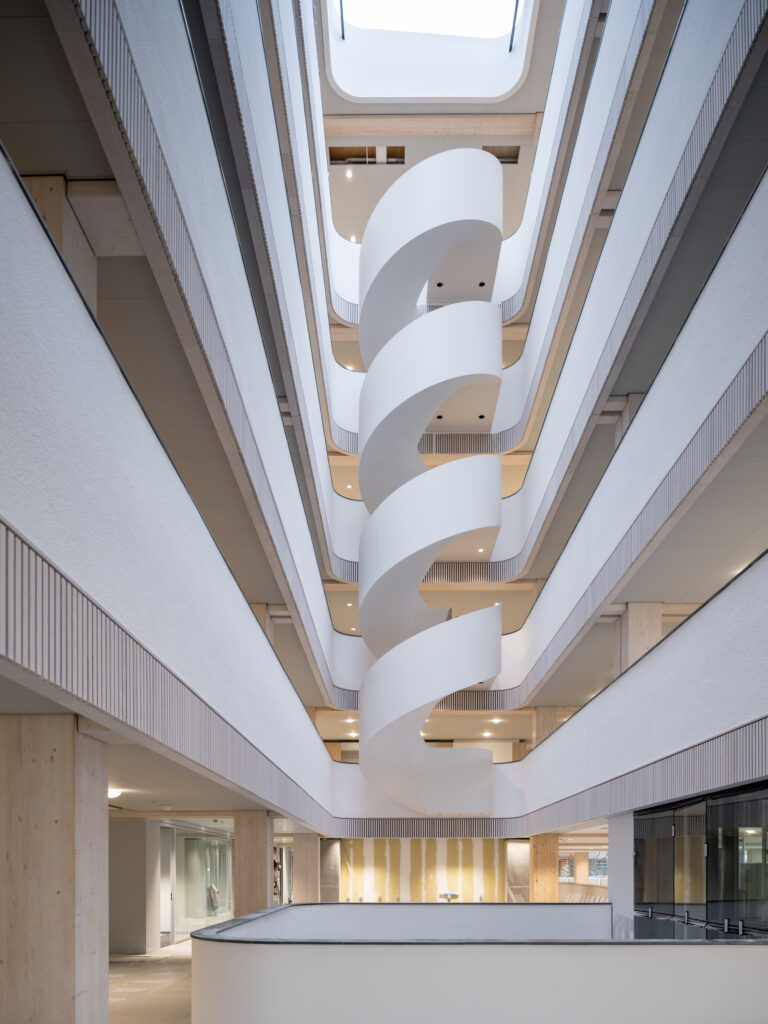 Een belangrijke keuze in het ontwerp is de toepassing van 7.000 m3 hout in de constructie, wat een positief effect heeft op de CO2-uitstoot en het welzijn van de gebruikers. Groenvoorzieningen op, in en rondom het gebouw brengen groen en biodiversiteit in een voorheen stenig gebied. Wateropslagsystemen en andere voorzieningen zorgen voor een besparing op water. Het pand is voorzien van zonnepanelen en volledig vrij van fossiele brandstoffen. Er is een in het oog springende trap centraal in het gebouw geplaatst om traplopen te stimuleren. Daarnaast zijn er terrassen en is er een looproute van 430 meter rondom het gebouw, zodat gebruikers een frisse neus kunnen halen en kunnen ontspannen in het groen.