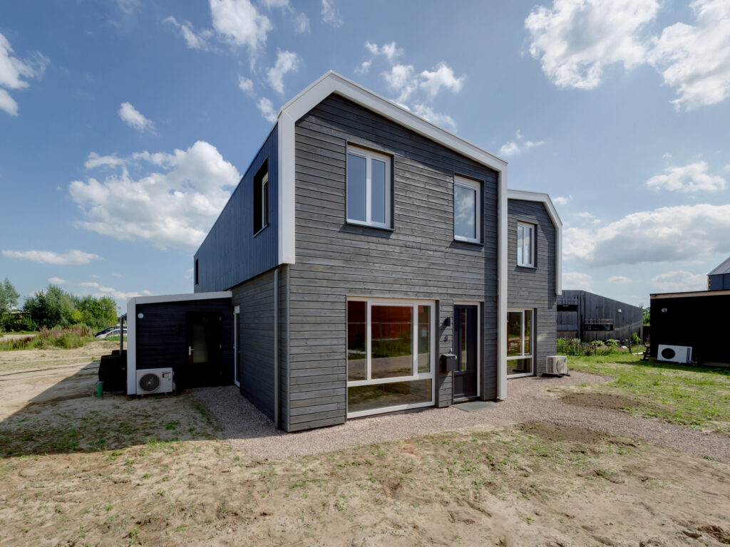 In opdracht van woningcorporatie SallandWonen heeft ontwerper en bouwer Tala 9 sociale huurwoningen gemaakt op basis van het concept ‘Nerf’. Het gaat om modulaire rug-aan-rug woningen van Cross Laminated Timber (CLT), houtvezelisolatie en een bamboe/grenen gevel. In totaal 90 procent biobased en met kozijnen van 100 procent gerecycled kunststof. De woningen gelegen in de wijk Olstergaard in het Overijsselse Olst, met een gebruiksoppervlak van 65 m2, zijn in augustus 2023 opgeleverd.